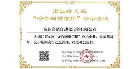 恭喜杭州高品自動化設備有限公司榮獲